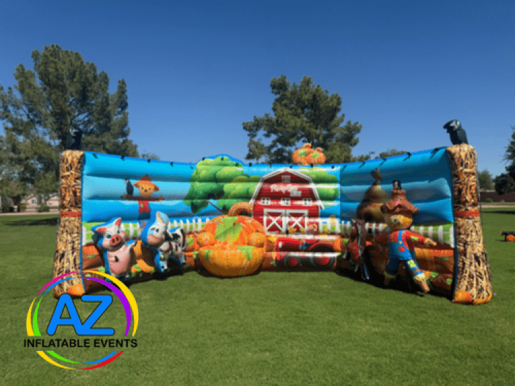 Create unforgettable fall memories! Rent our giant inflatable Pumpkin Patch Selfie Station with 3D farm animals and a scarecrow. Perfect for fall festivals, schools, and church events.