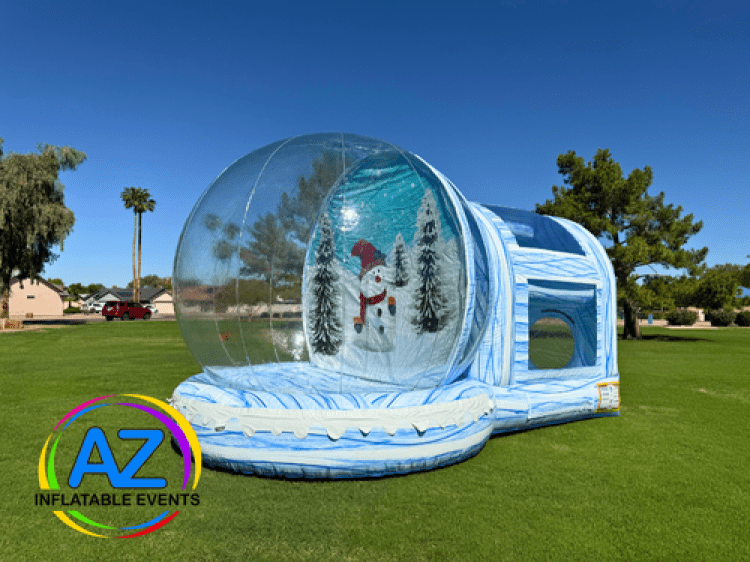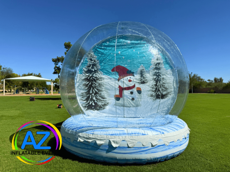 The inflatable Snow Globe has interchangeable backdrops for any occasion. Up to 5 people can climb in and pose for a picture in a real life-size snow globe. This is a sure way to add a little pizzaz to your next event. This adorable photo opportunity is not a bounce house.